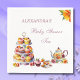 Add a touch of charm to your celebration with these personalised, whimsical Baby Shower Tea Party paper napkins. This delightful design features a floral teapot and teacup alongside a whimsical cake stand filled with delicious cupcakes topped with soft pink and yellow icing and sweet red cherries, all set against a crisp white background. Elegant lilac typography and script fonts complete the look, making these napkins the perfect addition to your tea party baby shower. A lovely way to honour the mum-to-be and create a beautiful, memorable table setting for guests. Ideal for adding a whimsical and elegant touch to your special day.