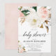 Blush pink magnolia floral rustic girl baby shower invitation