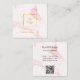 Blush pink marble gold logo elegant QR code Square Business Card