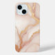 This iPhone 15 case showcases a luxurious marble design in soft blush pink, accentuated by elegant gold veins. The delicate pink tones combined with the shimmering gold create a sophisticated and feminine look, perfect for those who love a chic, modern aesthetic. This design offers a blend of luxury and style, making your phone a true statement piece.