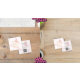 An elegant blush pink marble background. Personalise and add your business logo and text on front. Golden letters.
