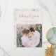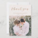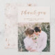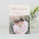 This trendy and elegant wedding thank you card features a blush pink marble look design and faux rose gold typography, with your personal photo.