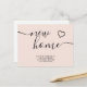 Simple minimalist blush pink heart with elegant typography moving announcement new home.