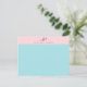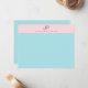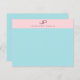 Blush Pink Mint Blue Monogram Simple Elegant Template Top Note Card.