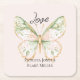 Blush Pink Mint Green Gold Butterfly Wedding Square Paper Coaster