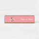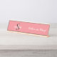 You can personalize this desk plate with your intial and name. Colored in blush pink background and black and white personalized text.