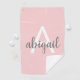 Modern Blush Pink Elegant Girly Monogrammed Golf Towel. This Golf Club Towel can be customised to include your initial and first name and is a perfect birthday or bachelorette party gift. Please contact the designer for matching items.