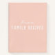 A beautiful modern blush pink personalised blush pink family recipes cooking book. A custom family cookbook featuring rustic hand written script calligraphy on a feminine girly background. A minimalist design with a dash of elegance.