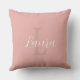 Simple unique modern blush dusty pink monogrammed and name personalised throw pillow with a white chic signature script.