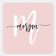 Blush Pink Modern Script Girly Monogram Name Square Sticker