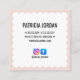 Features two lines of custom bold text, ideal for highlighting your name or tagline in an eye-catching way. On the reverse, the same scalloped frame design, now in white with a light pink creating a harmonious contrast. You have space for your full contact details and two social media icons (Facebook and Instagram) alongside space for your handles or account names. Social media icons can be removed or changed