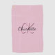 A pink background. Personalise and add a name, your monogram initials. The name is written with a hand lettered style script.