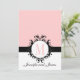 Pink, black and white chic vintage damask label with a modern monogram wedding invitation. Beautiful and versatile wedding invitations which you can change the background colour to suit your wedding colours. Art and design by Elke Clarke©2010. Customise with your names, monogram, wedding date and your invitation text of this lovely damask monogrammed wedding invitation. You can also change the background colour and don't forget to try different paper choices, each adding it's own "look" in addition to the design. Matching RSVP Cards with envelopes are shown below.