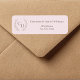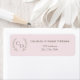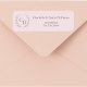 A soft blush pink colored background. Decorated with a wreath. Personalize and add your names, address and your first name initials. Warm taupe colored text.