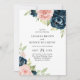 Blush Pink Navy Blue Floral All In One Wedding Invitation