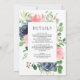 Blush Pink Navy Blue Floral All in One Wedding Invitation