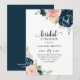 Blush Pink Navy Blue Floral Bridal Luncheon Invitation