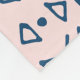 Modern and eclectic patterned fleece blanket with hand drawn triangle and arrow pattern in dark navy blue and light blush pink.