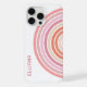 Contemporary light mauve taupe, dusty rose, blush pink, and peach orange red coloured circle stripes pattern cell phone case. With room to customise with a name, monogram, or initials of your choice. Beautiful, modern, and cool cover for the trend-savvy and art-loving hip trendsetter, artsy motif lover who wants to protect their phone from dust and dirt, wear and tear. This design is available for Apple iPhone 6, 7, and 8 Plus, 10 or X, XR, XS, 11, 12, and 13 Mini, 14, and 15 Plus and Pro Max cellphone cases. Show off your style, look fashionable trendy, and feel stylish with a unique design on a mobile device accessory of your choice.
