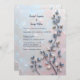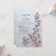 This wedding invitation features a graceful branch with muted blue and beige leaves, set against a soft pastel pink and pearl-toned background. The textured composition blends natural elegance with a dreamy, minimalist aesthetic. Perfect for modern, nature-inspired themes or designs that evoke serenity and subtle sophistication.