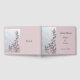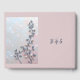 This wedding guest book features a graceful branch with muted blue and beige leaves, set against a soft pastel pink and pearl-toned background. The textured composition blends natural elegance with a dreamy, minimalist aesthetic. Perfect for modern, nature-inspired themes or designs that evoke serenity and subtle sophistication.