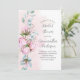 This bridal shower invitation exudes soft elegance with its watercolor floral motif and gentle pink gradient backdrop. A vertical arrangement of blush peonies and lush greenery adds a romantic, garden-inspired touch, while the layout balances visual charm with clean, centred typography. The overall design feels warm and refined—perfect for a spring or summer celebration at a picturesque venue.
