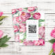 Elegant floral design featuring modern handwritten style script, QR CODE and romantic watercolor peonies on white background.The text can easily be personalised for a unique one of a kind design for your special day.