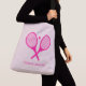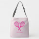 Pink crossbody bag with hot pink tennis design. Tennis player gift for her
