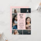Chic sweet 16 invitation featuring a photo collage with room for six of your own photos of the birthday girl. Add your invitation wording and details in black fonts against a blush pink background. The back features a blush pink print with a faint watercolor effect.