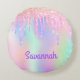 Blush pink purple iridescent name girl round cushion