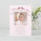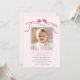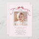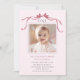 Invite friends and family to celebrate the first birthday with this cute invitation, featuring a deep blush pink ribbon bow and a photo.