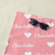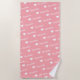 Blush Pink Personalised Name Pattern Beach Towel with Heart Design Summer Beach Bath Towel.
