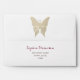 Beautiful, luxury, elegant, unique rose gold butterflies in combination with sparkle blush pink background with polka dot pattern. Stylish, trendy, adorable 5x7 envelope with return address.