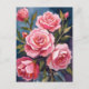 Blush Pink Rose Bouquet Painted Postcard