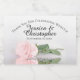 These beautiful miniature sparkling wine bottle labels are perfect as an addition to your bridal party swag bag, or simply for thanking guests and family. The gorgeous design features an image of a single long-stemmed blush pink coloured rose lying on its side reflecting in a pool of water. The text reads: Thank you for celebrating with us! There is space for the names of the couple, the wedding date, and the type of sparkling wine or other bottle contents.