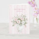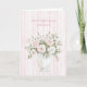 Blush Pink Rose Flowers Stripes Birthday Card