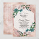 Blush Pink Rose Gold Succulents with Watercolor flowers, greenery, faux metallic veins, and geometric hexagon frame. Trendy and Modern Bridal Shower Invitations ~ Check my shop to see the entire wedding collection with this design!