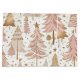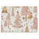 Elegant pattern featuring delicate blush pink Christmas trees adorned with swirling rose gold decorations on a soft cream background. Perfect for holiday gift bag.