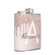 Blush Pink Rose Gold Faux Dripping Glitter Sparkle and Metallic Foil Elegant Monogram Flask. This Flask can be customised to include your initial and first name. The Pink Rose Gold Flask is perfect for a 21st, 30th, 40th, 50, 60th birthday, wedding, bridal shower or bachelorette party celebration.