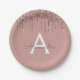 Blush Pink Rose Gold Glitter Monogram Birthday Paper Plate