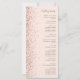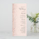 The left-hand edge of this elegant modern wedding program features a rose gold faux glitter design. The customisable text combines charcoal grey handwriting, copperplate and italic fonts on a blush pink background.