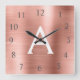 Blush Pink - Rose Gold Metallic Monogram Name Square Wall Clock