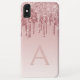 Blush Pink and Rose Gold Ombre Sparkle and Faux Dripping Glitter Girly Modern Monogram First Name and Initial Smart Phone Case. Please contact the designer for matching items
