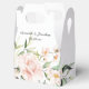 Beautiful blush pink roses, eucalyptus, and other greenery wedding favour box. Personalise with your own name and date.