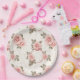 Party paper plate is shown in a lovely blush pink roses print.