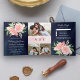 Blush Pink Roses Photo Collage Navy Blue Wedding Tri-Fold Invitation
