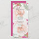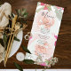 This elegant wedding menu captures the essence of your special day, featuring a stunning fuchsia magenta pink backdrop. It is adorned with a delicate spray of watercolor roses in soft shades of pink, raspberry, blush, and peach. The florals blend timeless romance with a modern, boho-inspired flair, offering a chic and sophisticated design that exudes warmth and charm. Perfect for any season—spring, summer, fall, or winter—this menu beautifully reflects the refined botanical aesthetic of your celebration, providing your guests with a memorable and heartfelt token of your love. Ideal for couples who desire a wedding menu as unique and stunning as their journey together.
