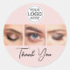 Blush Pink Script Logo Photo Lashes Thank You Classic Round Sticker