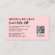 The back includes your contact details—such as phone number, website, email, and social handles—along with a QR code that you can link to your booking page or any other website. Below the QR code, a note reads “Scan to book an appointment.” The blush pink background colour can be customised to fit your brand style, making this a modern and professional choice for makeup artists.