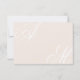A chic modern design with an edge, this modern minimal wedding response card features beautiful calligraphy script monograms of the bride and groom on alternate corners on the back of the card. Personalise the text template with your required RSVP date and the bride and groom's monogram initials on the back side. You may move your initials slightly left or right, up or down to accommodate their best display in this design format. The monograms look best when they run slightly off the edges. Shown here with a soft blush pink background and white calligraphy initials.